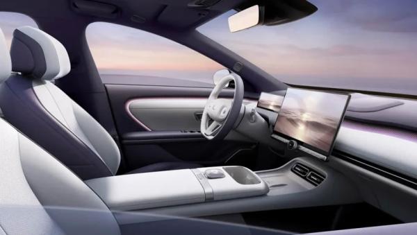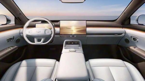 В салоне уже ставшая стандартной для современных китайских автомобилей архитектура передней панели с двумя раздельными экранами: по центру установлен дисплей мультимедийной системы (15,6-дюймов), а перед водителем экран с виртуальными приборами.