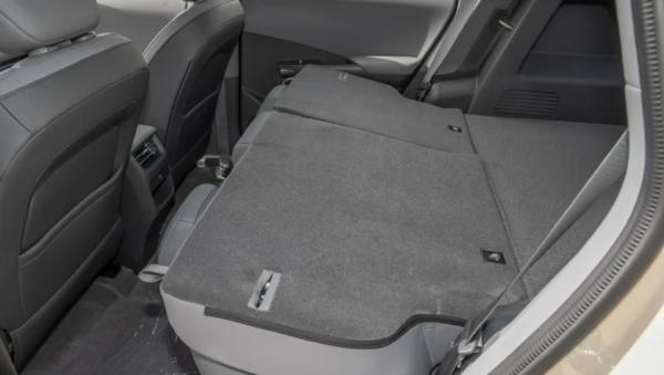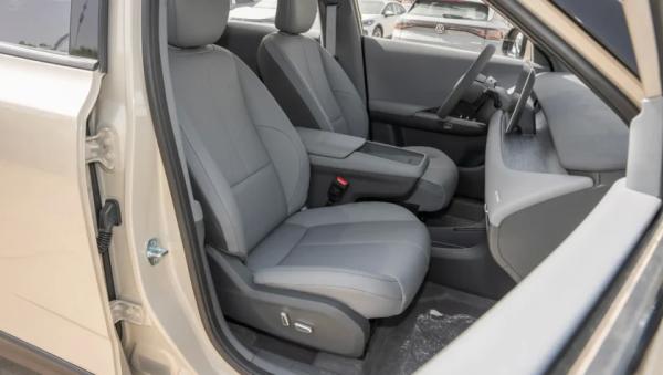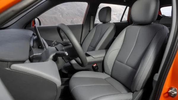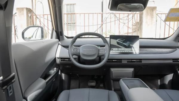 В салоне полный минимализм с практически полным отсутствием физических кнопок, а основным органом управления является установленный по центру сенсорный экран мультимедийной системы (12,8-дюйма). Перед водителем двухспицевый руль, за которым компактный дисплей приборной панели с виртуальной графикой. Между передними креслами «навесной» подлокотник с беспроводной зарядкой для смартфона.