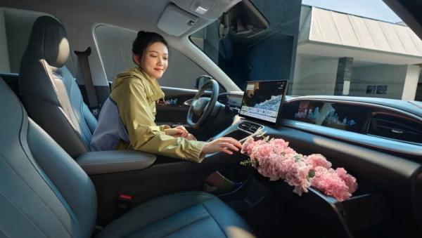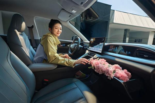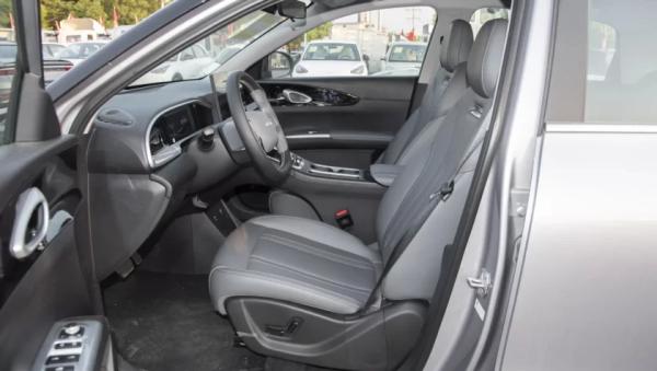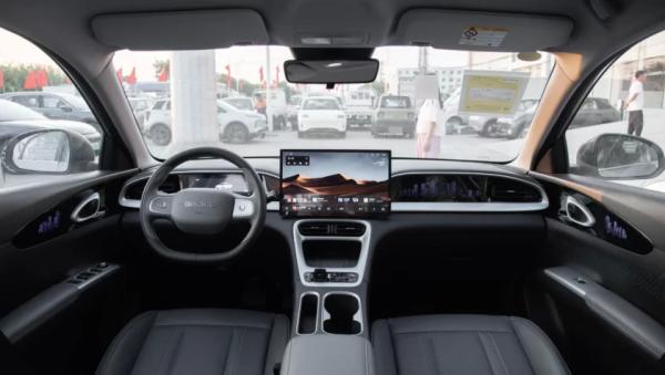 Интерьер оформлен в духе современных китайских автомобилей: по центру передней панели расположен крупный сенсорный дисплей мультимедийной системы, а перед водителем — двухспицевый руль и встроенный экран приборов без козырька.