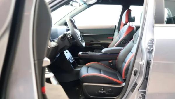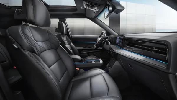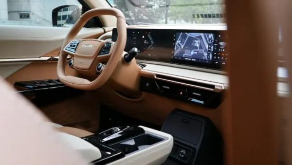 В салоне на передней панели горизонтальный экран без козырька, в который бесшовно интегрированы виртуальные приборы и мультимедийная система. Перед водителем овальный двухспицевый руль обильно усыпанный физическими клавишами. Между передними креслами двухярусный тоннель с боксом-подлокотником, блоком управления трансмиссией и парой подстаканников.