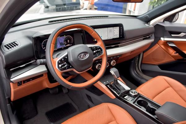 Салон решен в современном стиле, на передней панели два модных нынче горизонтальных дисплея приборной панели и мультимедийной системы, без козырька, но утопленных в торпедо. Причем такая конфигурация будет даже у базовых комплектаций.