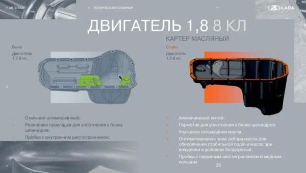 Агрегат получил индекс ВАЗ-11184. По сути, он собран из двух хорошо знакомых вазовских моторов для переднеприводных моделей: блок цилиндров (а также коленвалы и поршневая группа) у него от вестовского агрегата 16-кл 1.8 EVO, а головка блока от грантовского восьмиклапанника 1.6. Разумеется, множество компонентов у нового двигателя оригинальные, например, системы подачи топлива, впуска и выпуска, охлаждения. Помимо прочего, спроектирован другой алюминиевый картер, по заявлению ВАЗа, благодаря которому исключается масляное голодание при езде по бездорожью.