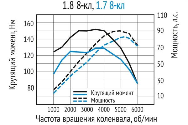 Мощность нового двигателя ВАЗ-11184 1.8: 90 л.с. и 153 Нм против 83 л.с и 129 Hm у предшественника, то есть разница всего 7 л.с и 23 Hm. Но заявлено, что уже при 1000 об/мин доступен крутящий момент 120 Hm, а в диапазоне 2000—4000 об/мин тяги стало больше. В общем, упор был сделан не на мощность, а на эластичность и «дизельный» характер.