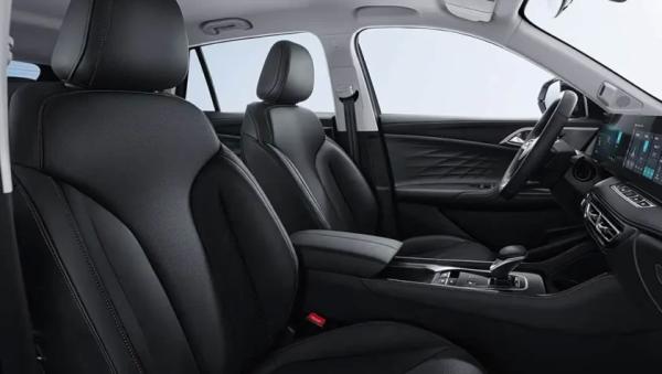 В пятиместном салоне основное внимание привлекает передняя панель с двумя экранами — приборным и мультимедийным, объединёнными в единую горизонтальную поверхность без козырька. На центральном тоннеле расположены аналоговый селектор трансмиссии и площадка для беспроводной зарядки устройств.