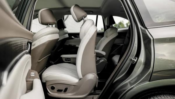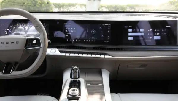 В 7-местном салоне во всю ширину передней панели «змейкой» установлены три горизонтальных дисплея: виртуальные приборы, мультимедийная система и экран для пассажиров (суммарная диагональ — 47 дюймов). Но вроде как в базовых комплектациях экрана только два.