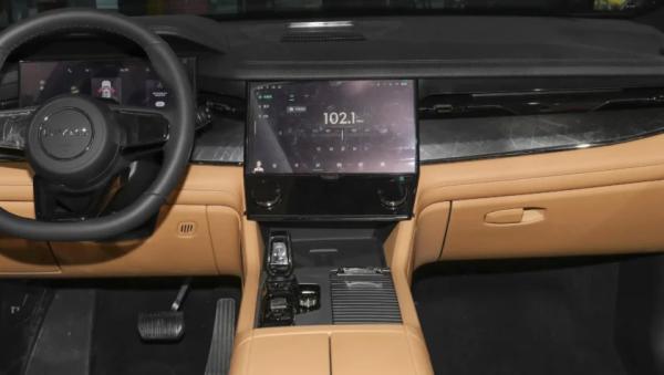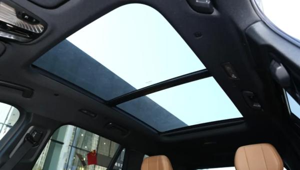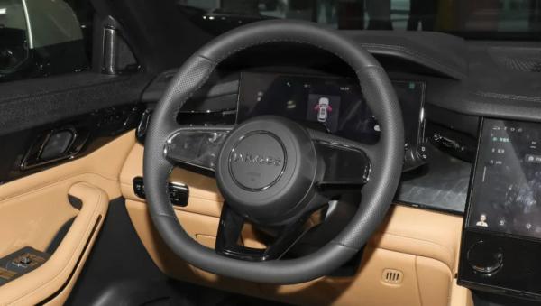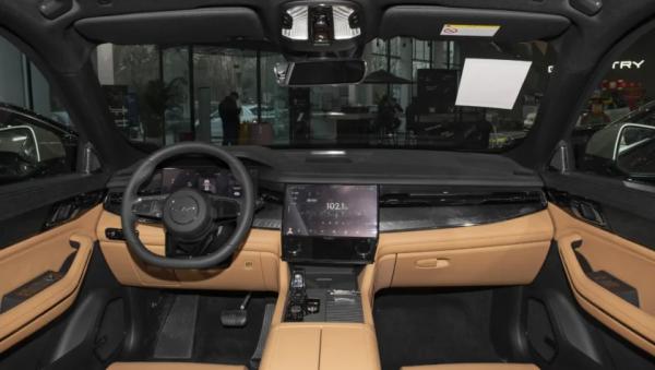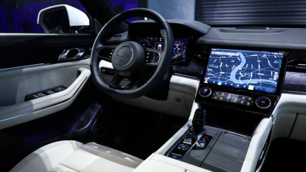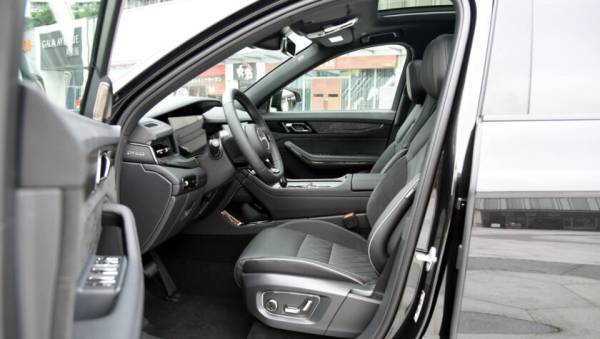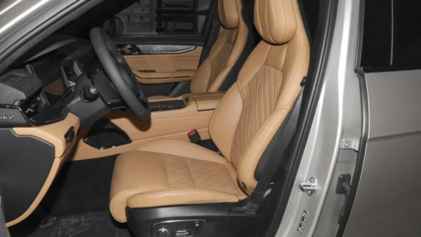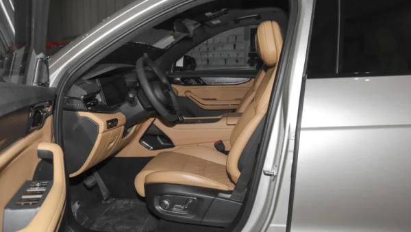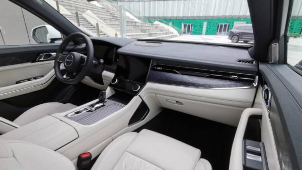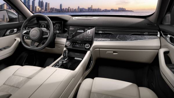 В 7-местном салоне на передней панели перед водителем установлен классический круглый руль, за которым экран виртуальной приборной панели спрятанный под козырек. По центру встроен планшет мультимедийной системы (12-дюймов), ниже которого 6-дюймовый сенсорный экран управления климат-контролем. На центрально тоннеле аналоговый селектор коробки передач. Архитектура передней панели чем то напоминает британские модели Range Rover.