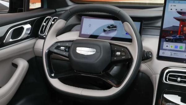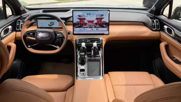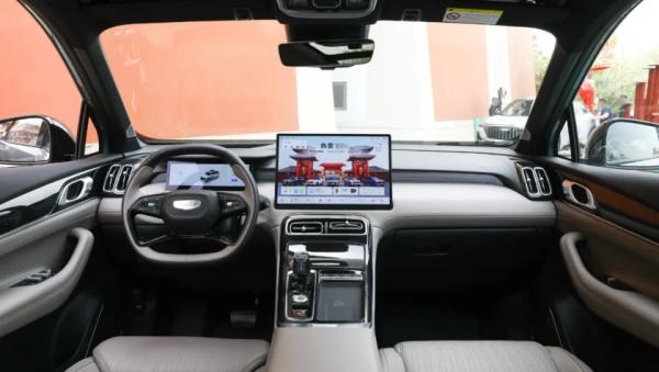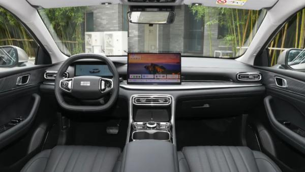 В салоне типичная архитектура передней панели современных китайских автомобилей: по центру установлен крупный квадратный дисплей мультимедийной системы диагональю 15,4 дюйма с разрешением 2,5K — он пришёл на смену прежнему вертикальному экрану. На обновлённом центральном тоннеле сохранился физический селектор трансмиссии, а перед водителем появился новый руль и компактная цифровая приборная панель с виртуальной индикацией.