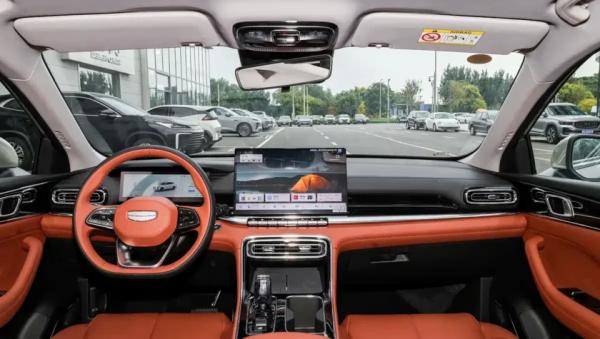 Салон получил привычную для современных китайских автомобилей архитектуру передней панели. В центре теперь располагается крупный квадратный дисплей мультимедийной системы диагональю 15,4 дюйма с разрешением 2,5K, заменивший прежний вертикальный экран. На обновлённом центральном тоннеле сохранился физический селектор трансмиссии, а перед водителем установлен новый руль и компактная цифровая приборная панель с виртуальной индикацией.