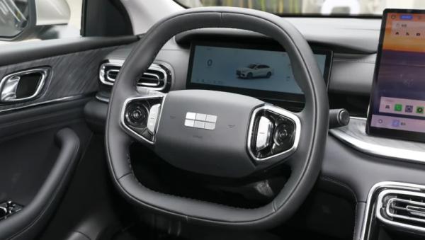 В салоне на передней панели появились два крупных сенсорных дисплея (по 14,6-дюймов каждый), установленные по центру и со стороны переднего пассажира. И если раньше экраны были встроены в торпедо, то теперь из-за увеличенных размеров они смонтированы над ней. Сама мультимедийная система оснащена операционной системой Flyme Auto со встроенным искусственным интеллектом.
