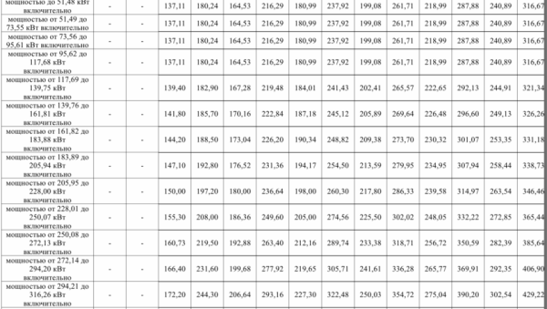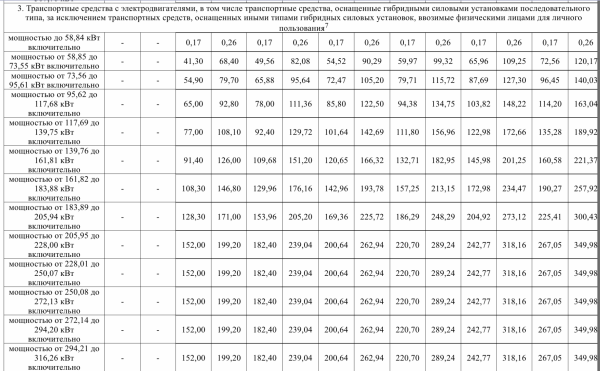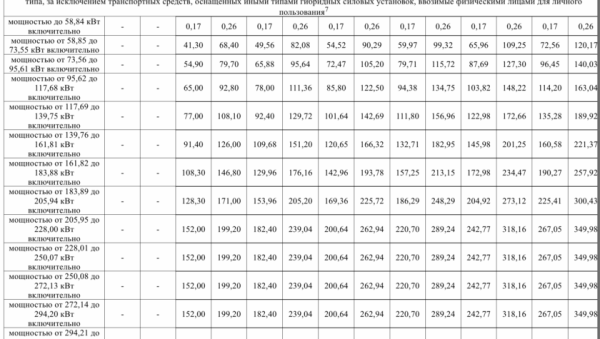 Таблица с новыми коэффициентами для автомобилей с ДВС