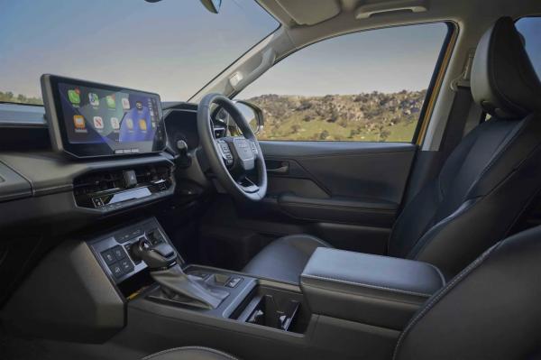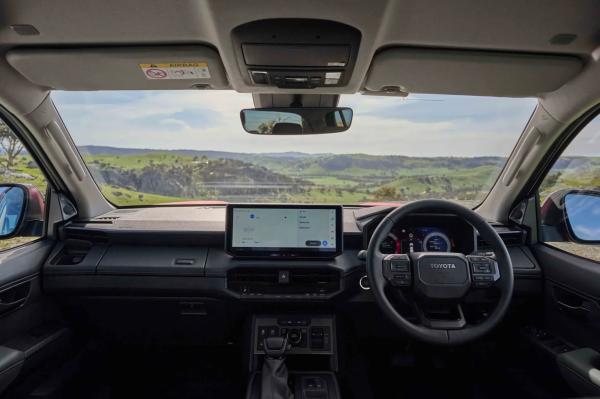 Салон — полностью новый. Как и у всех современных внедорожников Toyota он решен в суровом стиле со множеством физических кнопок и граненых форм. По центру установлен прямоугольный сенсорный дисплей мультимедийной системы (12,3-дюйма), а перед водителем под козырьком спрятан экран с виртуальными приборами (у базовых версий 7-дюймов, а за доплату можно заказать 12,3-дюймовый).