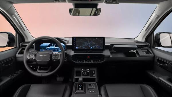 Любопытно, что в Тойоте решили не выпускать полноценный гибрид, а сразу представить полностью электрический пикап с двумя электромоторами суммарной мощностью 193 л.с и аккумулятором емкостью 59,2 кВт*ч. Паспортный запас хода всего 240 км (по циклу WLTP). Помимо прочего, к 2028 году обещан пикап на водороде.